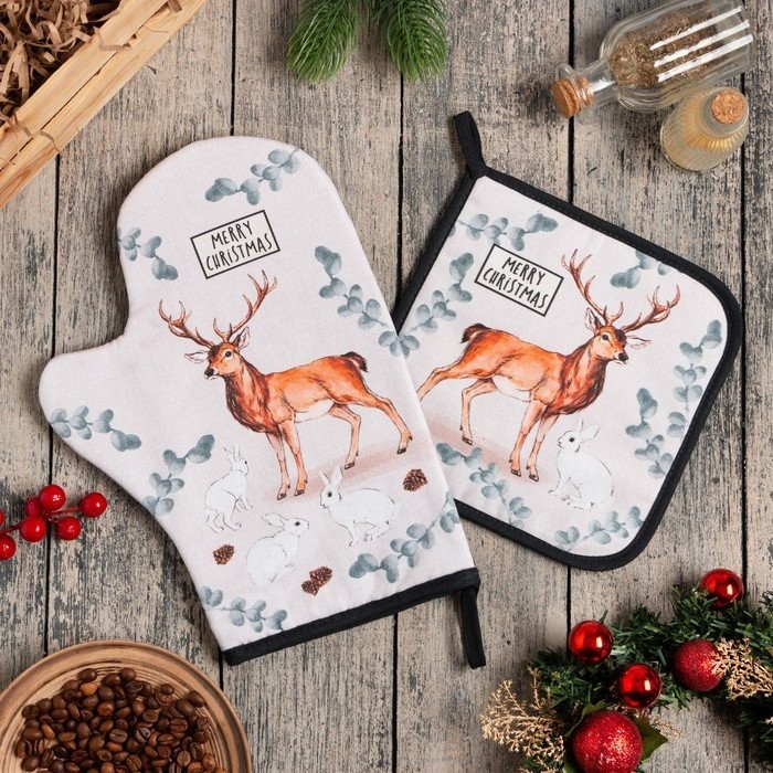Набор кух. «Merry Christmas» варежка-прихватка 20×28 см, прихватка 19×19 см, 100% хл
