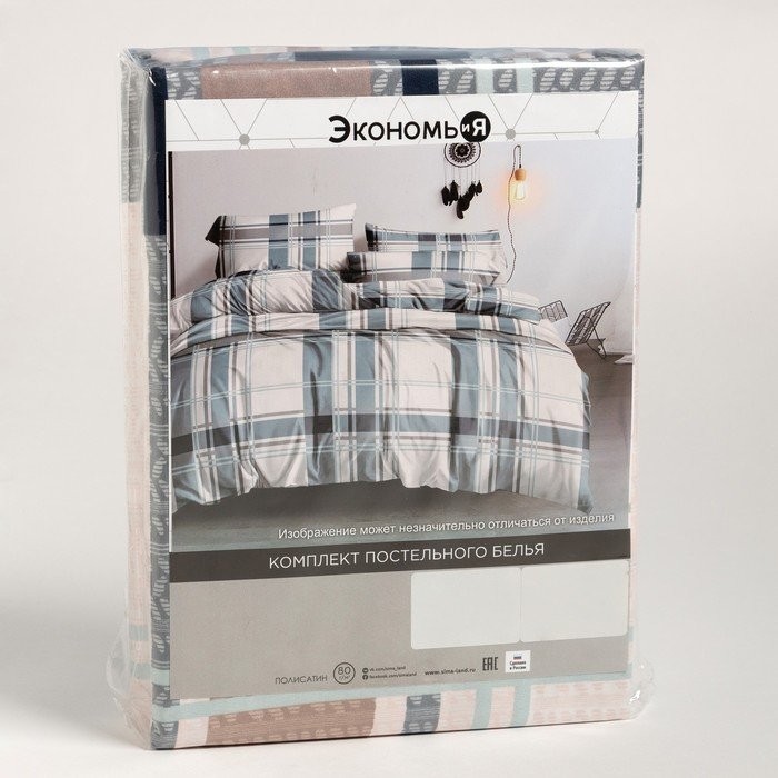 Постельное бельё Экономь и Я Евро «Клетка» 200×210 см, 220×215 см, 70×70 см-2 шт, полисатин, 80 г/м²