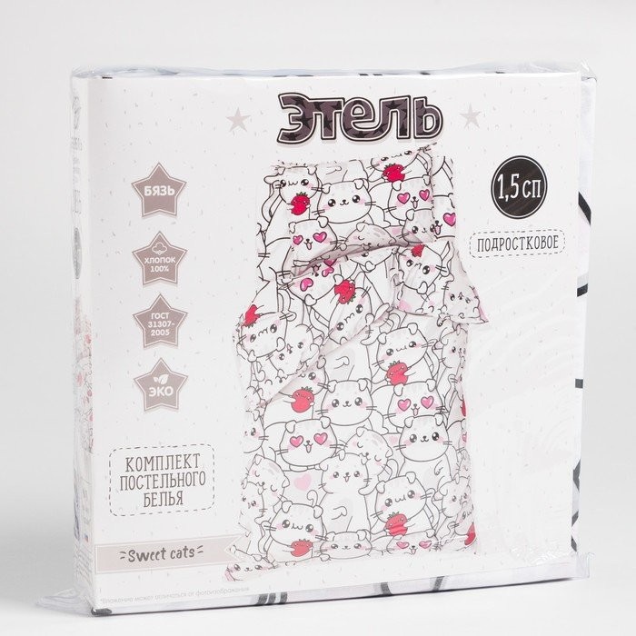 Постельное бельё Этель 1,5 сп «Sweet cats», 143×215 см, 150×214 см, 50×70 см -1 шт, 100% хлопок, бязь