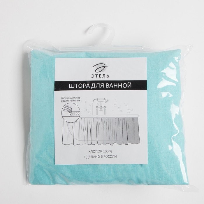 Штора для ванной «Этель» бирюзовый, 160×48 см, 100% хлопок