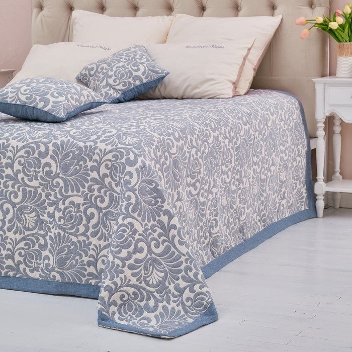 Покрывало хлопковое Этель «Узоры» 220×240 см, цвет серый, 100% хлопок, 300гр/м2