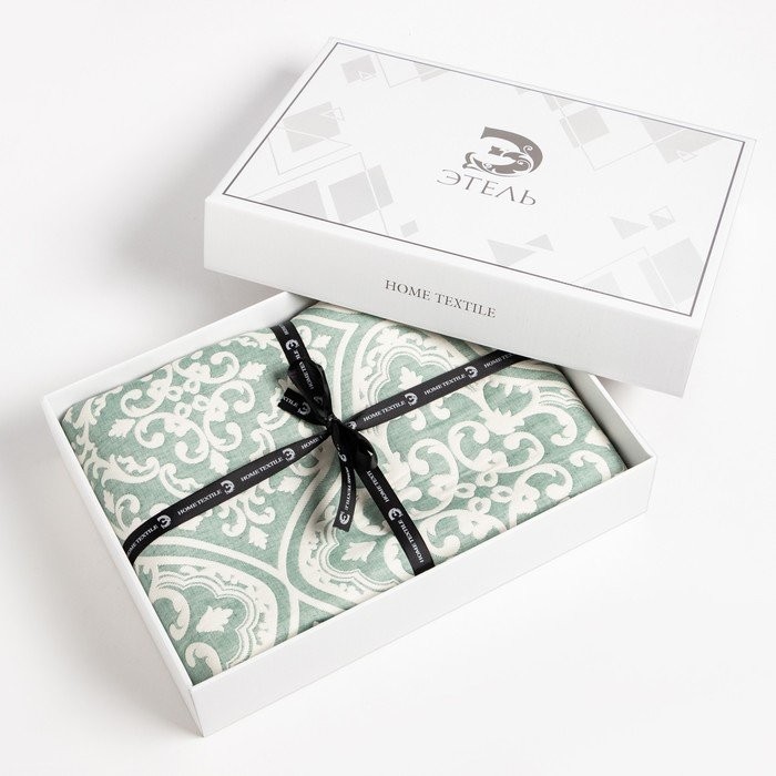 Покрывало хлопковое Этель «Орнамент» 180×240 см, цвет зелёный, 100% хлопок, 300гр/м2