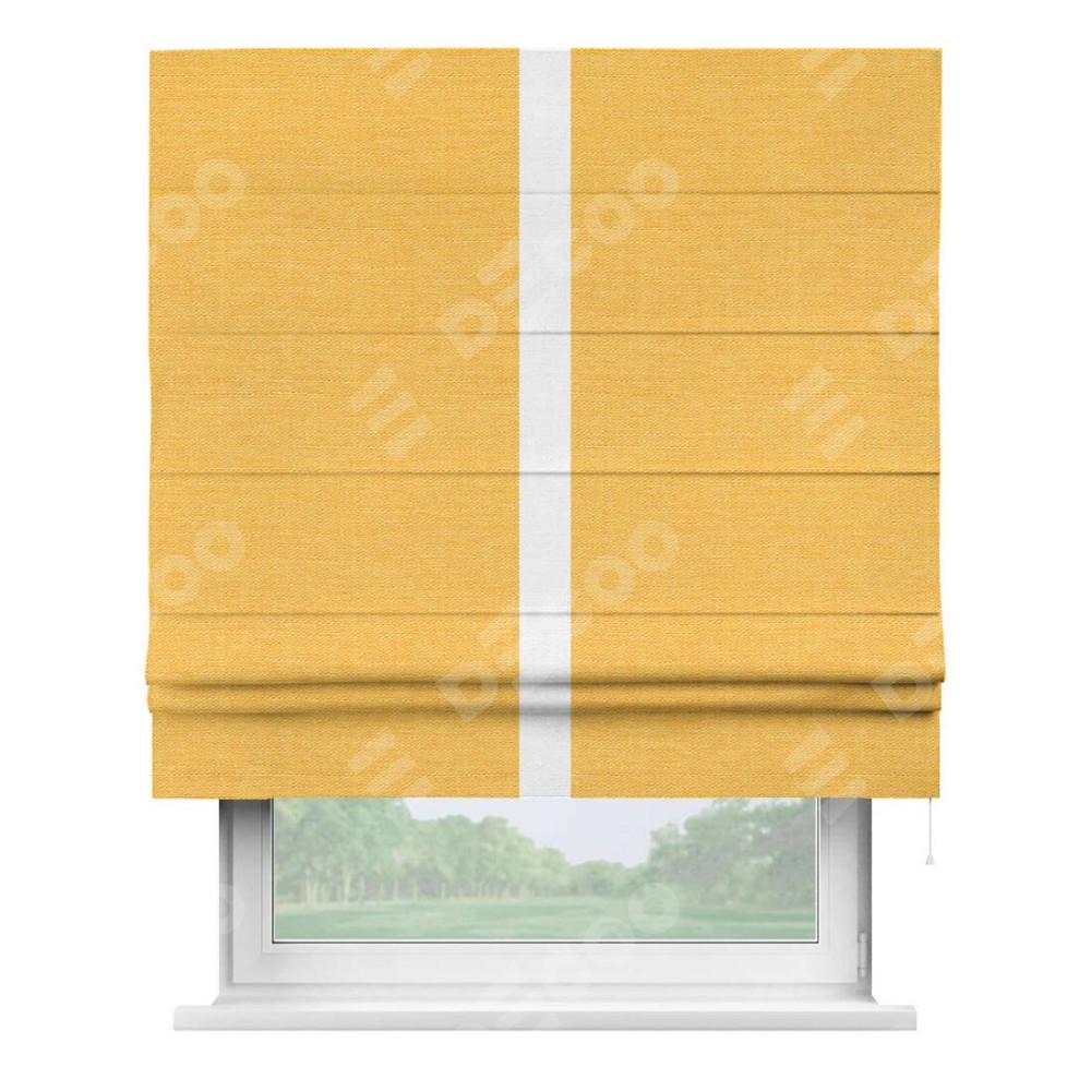 Римская штора производителя «Cortin», используется для проёма, пошита из ткани лён желтый, артикул 63738. Отделка шторы кантом «Хайвэй», ткань для канта используется из льна разной расцветки на выбор. Имеет универсальный механизм и подходит для монтажа: на потолок, на стену и в нишу.