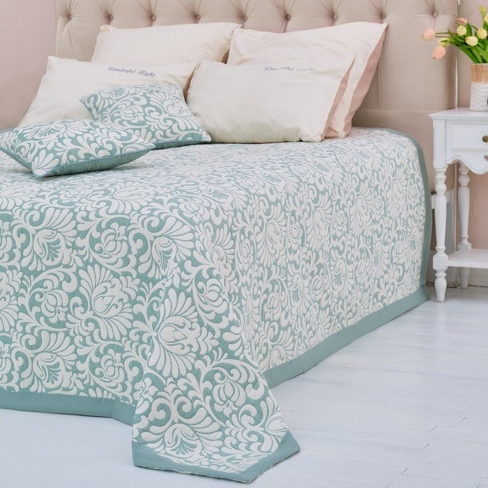 Покрывало хлопковое Этель «Узоры» 200×240 см, цвет зелёный, 100% хлопок, 300гр/м2