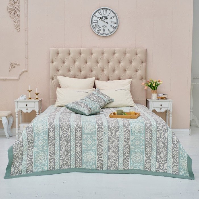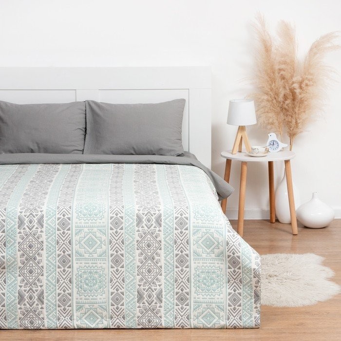 Покрывало хлопковое Этель «Инди» 150×240 см, цвет серо-зеленый,100% хлопок, 300гр/м2