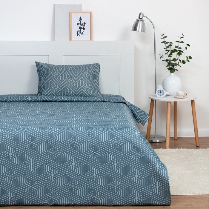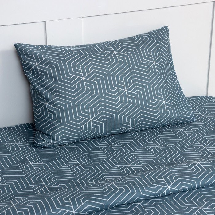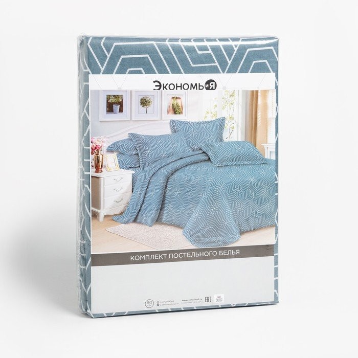 Постельное бельё 1,5сп Экономь и Я «Синяя геометрия» 143х215см, 145х214см, 50х70см-1 шт 60г/м2 микрофибра