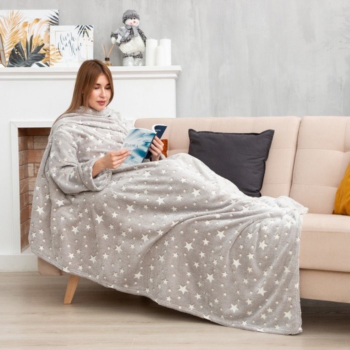 Плед с рукавами светящийся в темноте Этель «Звезды» 150*200, 100% п/э, 220 гр/м2