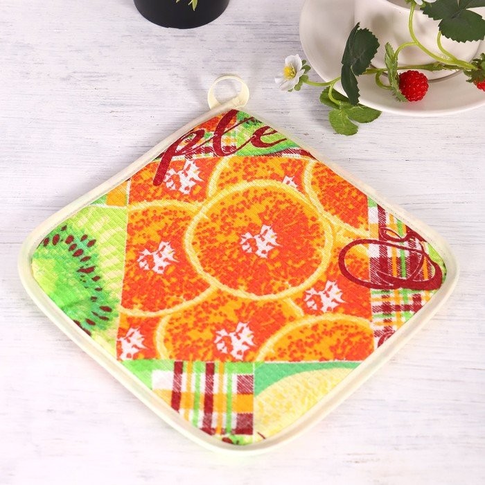 Прихватка 18×18 см, Фруктовый микс, вафельное, 100% хлопок