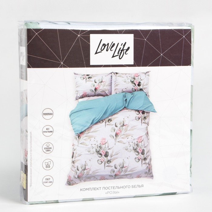 КПБ евро LoveLife «Розы»: пододеяльник 200*217см+наволочка 50*70см-2шт, поплин, 125 г/м²