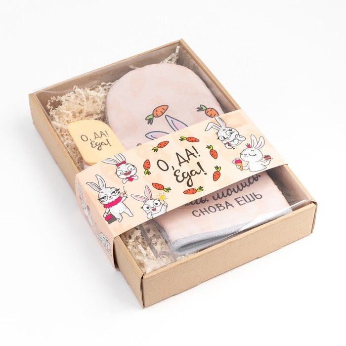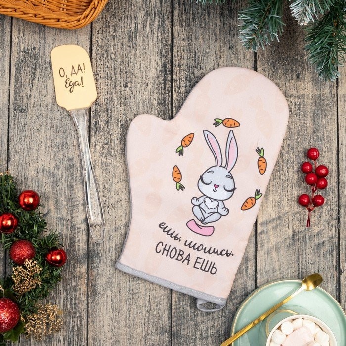 Набор подарочный Доляна «Ешь, молись» МИКС: варежка-прихватка, лопатка силикон