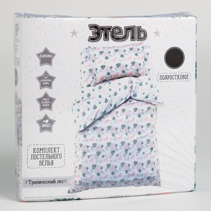 Постельное бельё Этель 1,5 сп «Тропический лес» 143×215 см, 155×214 см, 50×70 см -1 шт, 100% хлопок, сатин