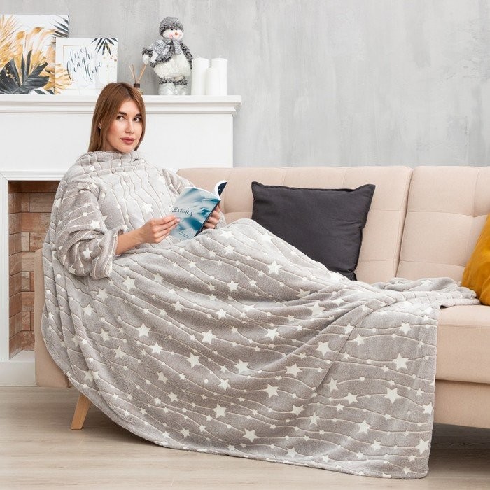 Плед с рукавами светящийся в темноте Этель «Звездное небо» 150*200, 100% п/э, корал-флис 220