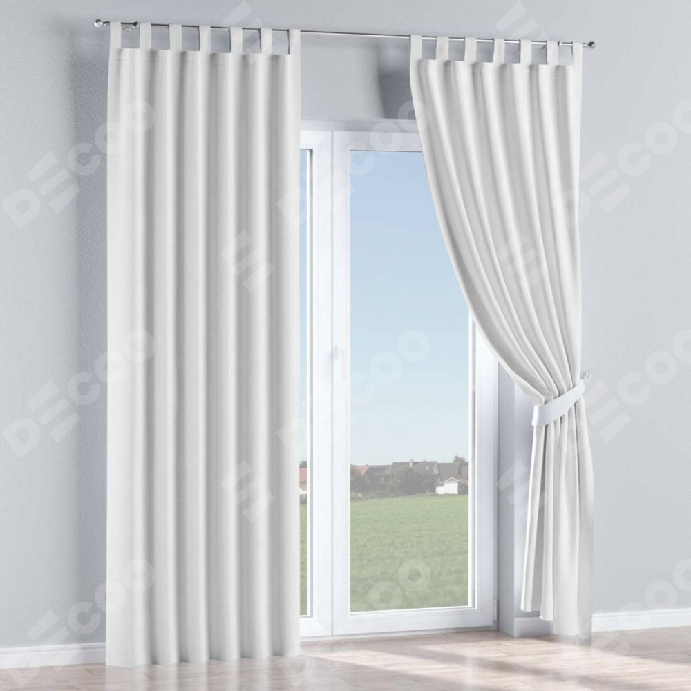 Комплект прямых штор, от производителя «Cortin», пошиты из ткани вельвет белый, артикул ткани 10810. Данная модель пошита на петлях, комплектуется на выбор круглым карнизом и подходит для монтажа на стену или потолок. Прямые шторы на петлях шьются по стандарту с коэффициентом 1/2 (на 100 см. ширины проёма 200 см. ширины ткани), отличительным преимуществом данной модели является простой способ монтажа. Достаточно повесить ее на трубу и штора готова!