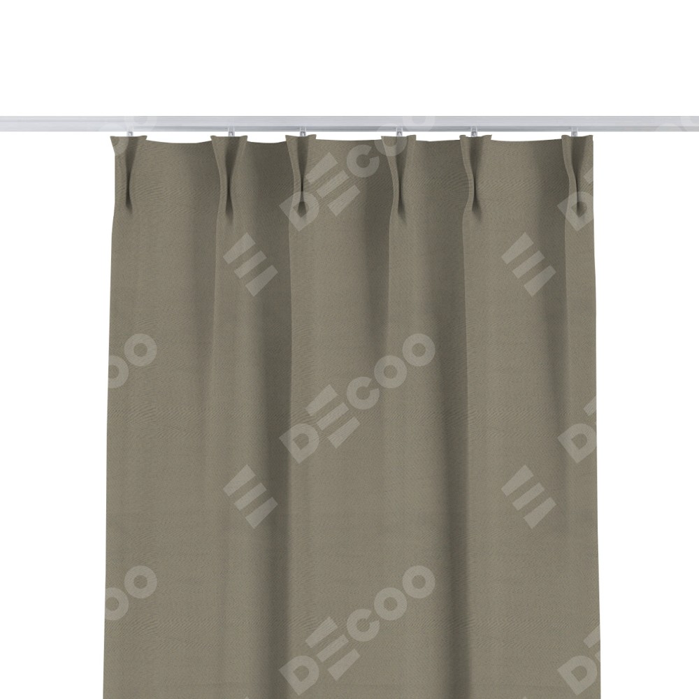 Комплект прямых штор, от производителя «Cortin», пошиты из ткани блэкаут однотонный бежево-серый, артикул ткани 00004. С изнаночной стороны в верхней части штор пристрачивается шторная лента с декоративными складками «Кустик». Для создания элегантных складок прямые шторы шьются по стандарту с коэффициентом 1:2 (на 100 см. ширины проёма 200 см. ширины ткани).