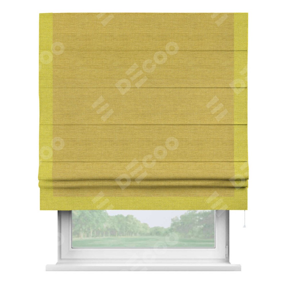 Римская штора производителя «Cortin», используется для проёма, пошита из ткани лён светло-салатовый, артикул 53438. Отделка шторы кантом «Виктория», ткань для канта используется из льна разной расцветки на выбор. Имеет универсальный механизм и подходит для монтажа: на потолок, на стену и в нишу.