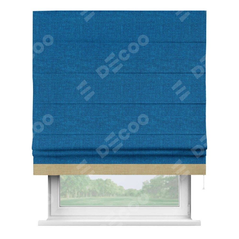 Римская штора «Кортин» с кантом Джестер, для проема, ткань лён синий