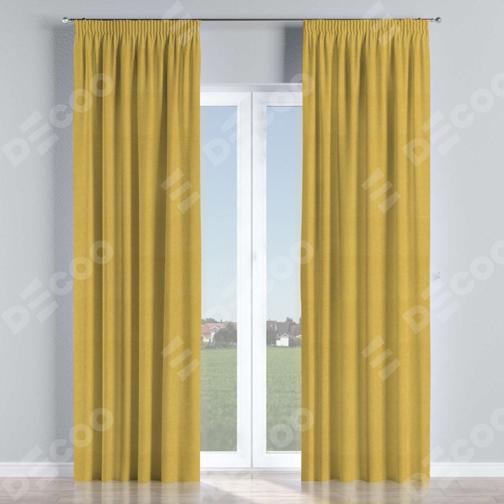 Комплект прямых штор, от производителя «Cortin», пошиты из ткани твид блэкаут пыльная горчица, артикул ткани 21588. С изнаночной стороны в верхней части штор пристрачивается шторная лента с декоративными складками «Карандаш». Для создания элегантных складок прямые шторы шьются по стандарту с коэффициентом 1:2 (на 100 см. ширины проёма 200 см. ширины ткани).