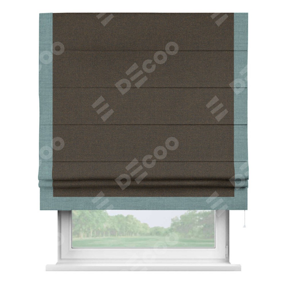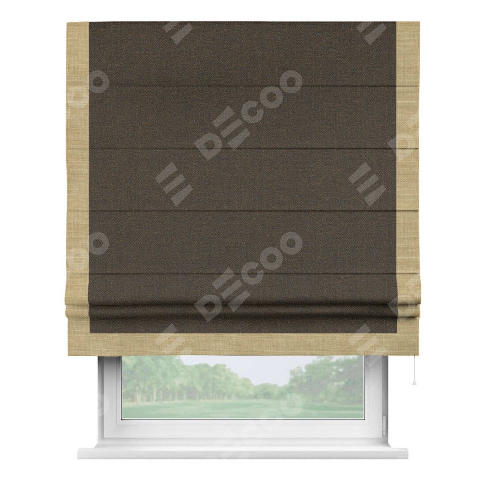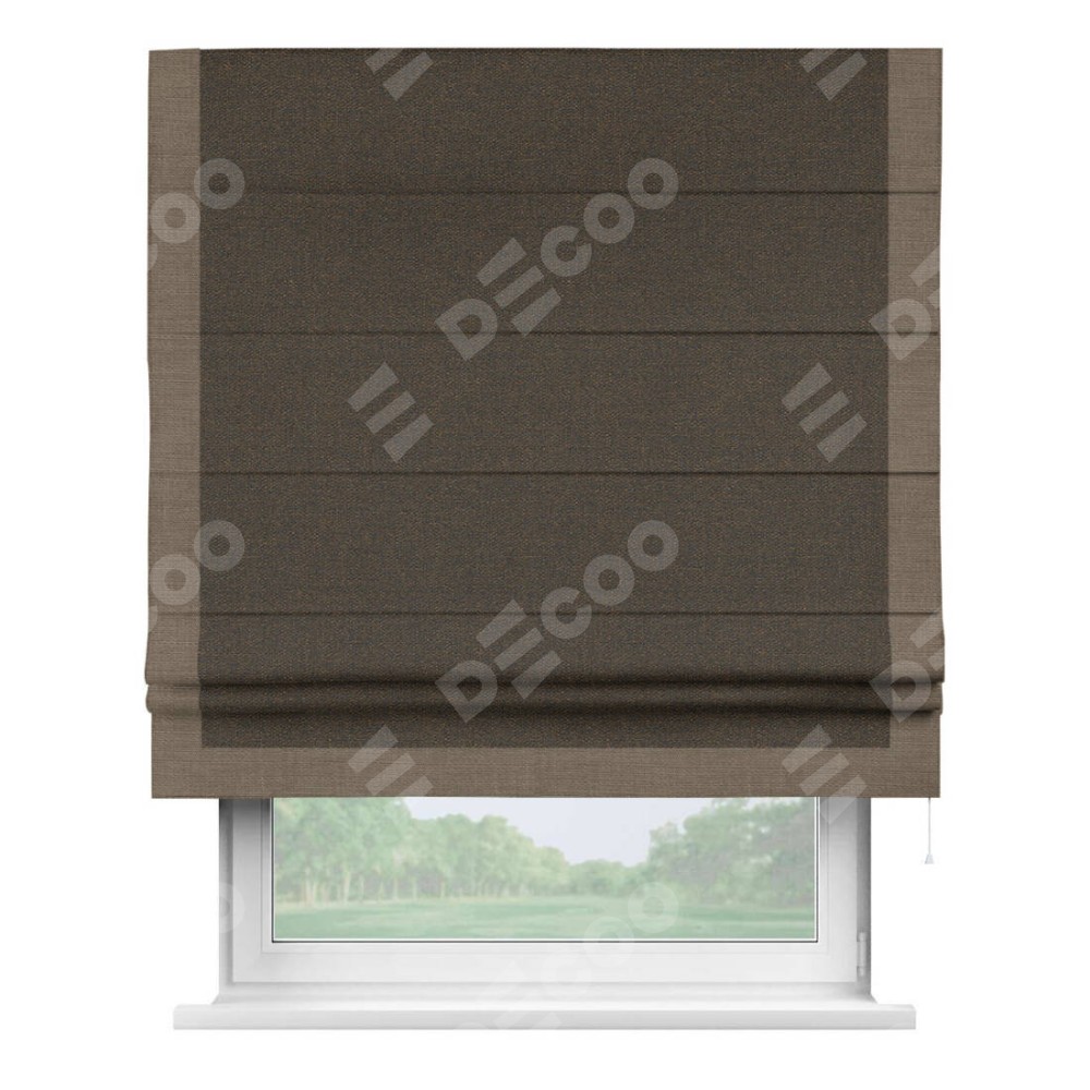 Римская штора «Кортин» с кантом Виктория, для проема, ткань лён темно-коричневый