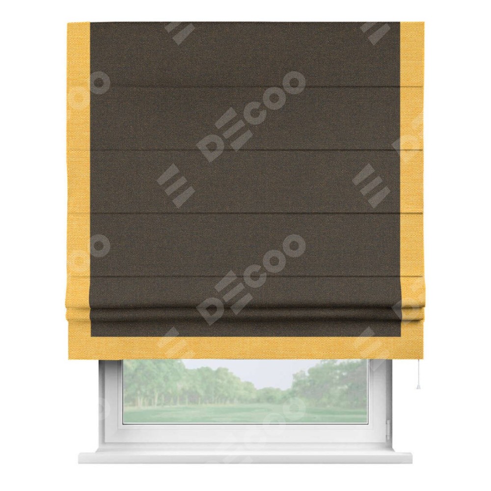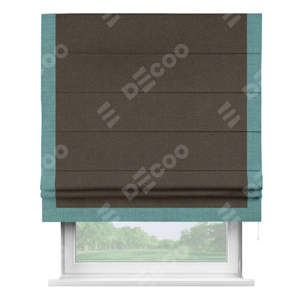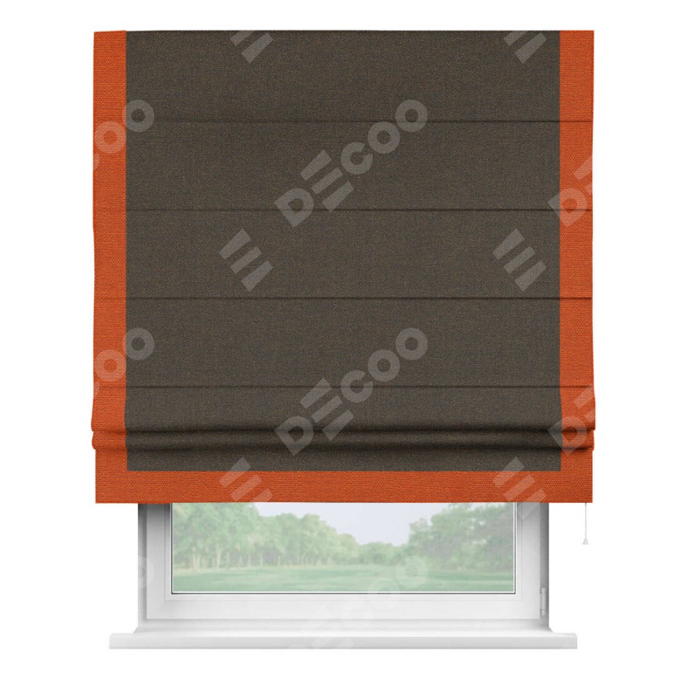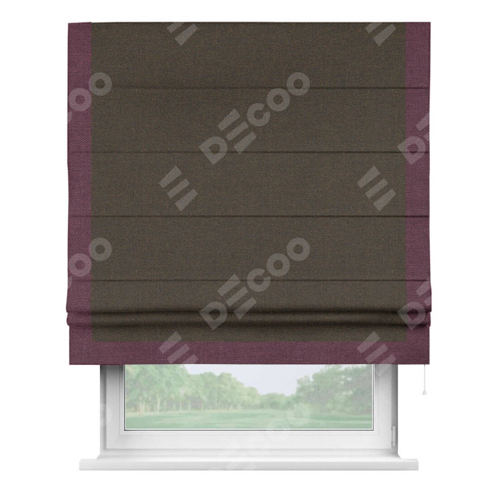 Римская штора «Кортин» с кантом Виктория, для проема, ткань лён темно-коричневый