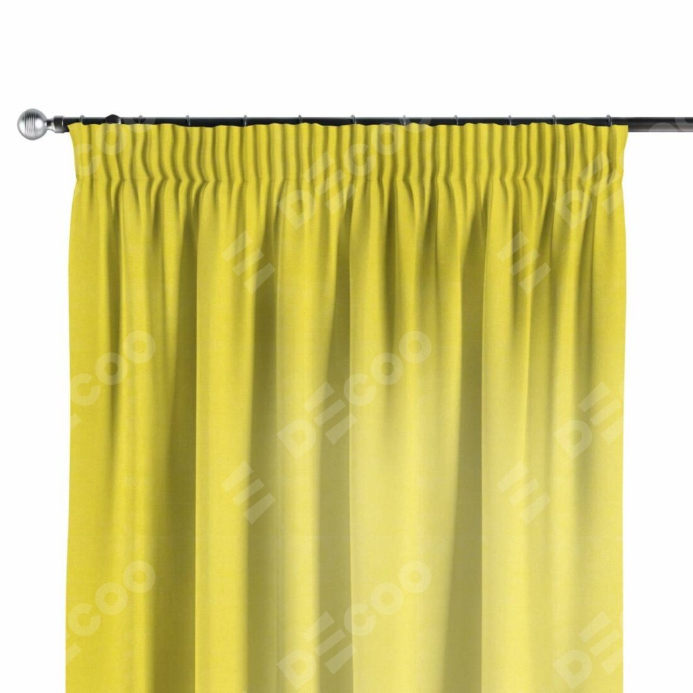 Комплект прямых штор, от производителя «Cortin», пошиты из ткани вельвет светло-желтый, артикул ткани 30997. С изнаночной стороны в верхней части штор пристрачивается шторная лента с декоративными складками «Карандаш». Для создания элегантных складок прямые шторы шьются по стандарту с коэффициентом 1:2 (на 100 см. ширины проёма 200 см. ширины ткани).
