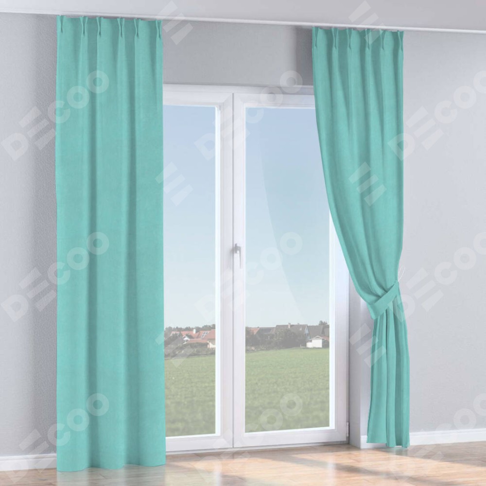 Комплект прямых штор, от производителя «Cortin», пошиты из ткани вельвет тиффани, артикул ткани 17765. С изнаночной стороны в верхней части штор пристрачивается шторная лента с декоративными складками «Кустик». Для создания элегантных складок прямые шторы шьются по стандарту с коэффициентом 1:2 (на 100 см. ширины проёма 200 см. ширины ткани).