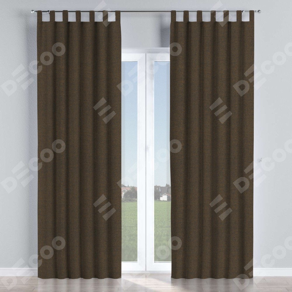Комплект прямых штор, от производителя «Cortin», пошиты из ткани лён тёмно-коричневый, артикул ткани 53444. Данная модель пошита на петлях, комплектуется на выбор круглым карнизом и подходит для монтажа на стену или потолок. Прямые шторы на петлях шьются по стандарту с коэффициентом 1/2 (на 100 см. ширины проёма 200 см. ширины ткани), отличительным преимуществом данной модели является простой способ монтажа. Достаточно повесить ее на трубу и штора готова!