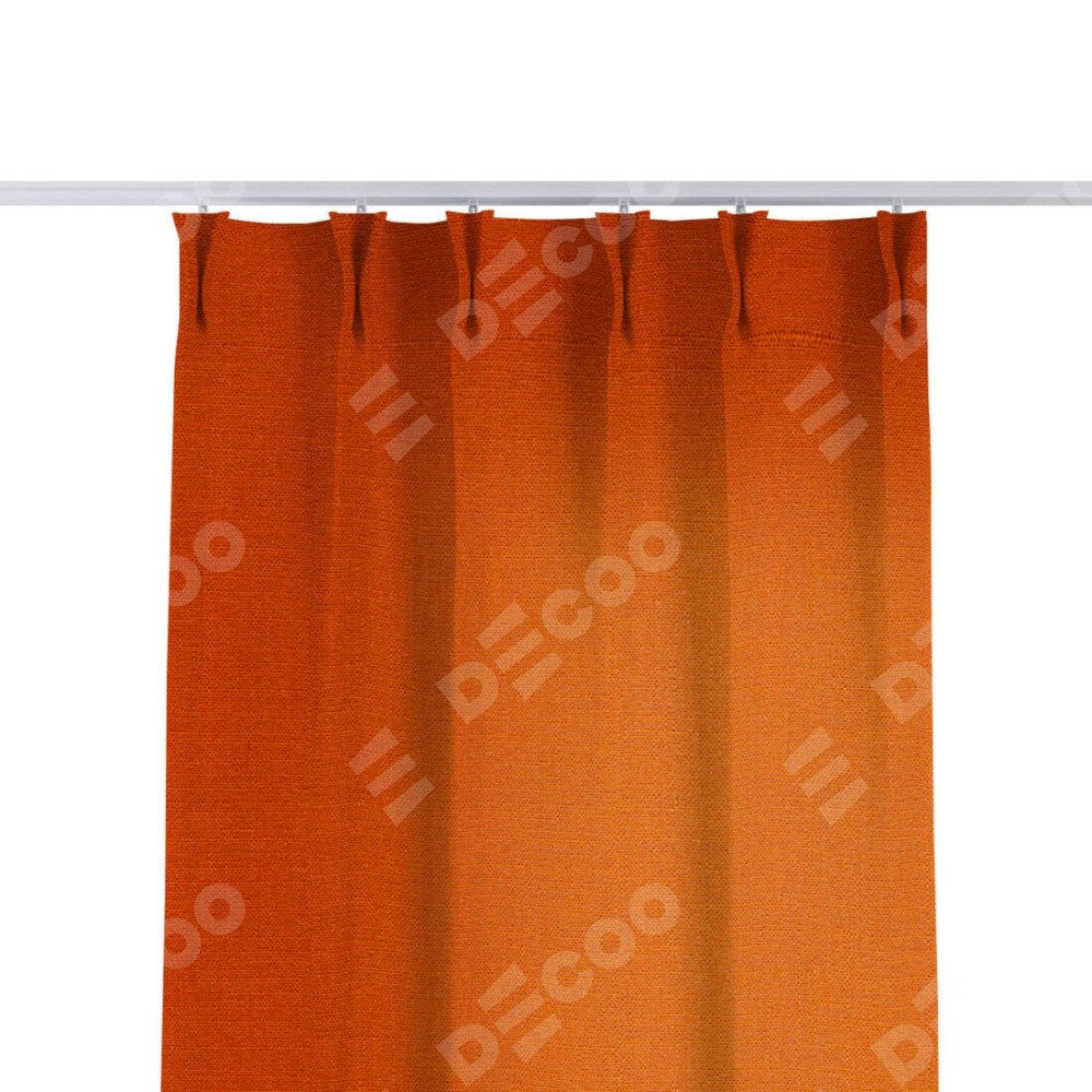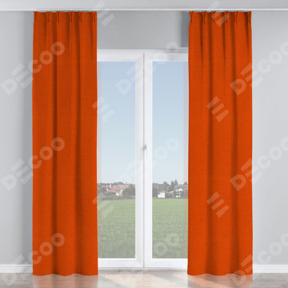 Комплект прямых штор, от производителя «Cortin», пошиты из ткани лён терракотовый, артикул ткани 53440. С изнаночной стороны в верхней части штор пристрачивается шторная лента с декоративными складками «Кустик». Для создания элегантных складок прямые шторы шьются по стандарту с коэффициентом 1:2 (на 100 см. ширины проёма 200 см. ширины ткани).