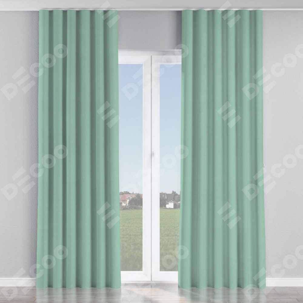 Комплект прямых штор, от производителя «Cortin», пошиты из ткани блэкаут однотонный ментоловый, артикул ткани 29584. С изнаночной стороны в верхней части штор пристрачивается шторная лента с декоративными складками «Волна». Для создания элегантных складок прямые шторы шьются по стандарту с коэффициентом 1:2 (на 100 см. ширины проёма 200 см. ширины ткани).