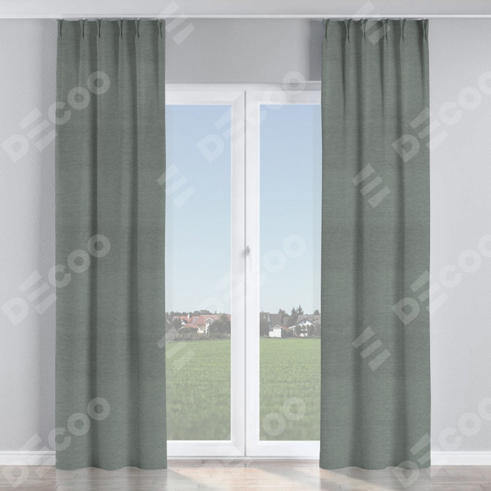 Комплект прямых штор, от производителя «Cortin», пошиты из ткани твид блэкаут серый, артикул ткани 21577. С изнаночной стороны в верхней части штор пристрачивается шторная лента с декоративными складками «Кустик». Для создания элегантных складок прямые шторы шьются по стандарту с коэффициентом 1:2 (на 100 см. ширины проёма 200 см. ширины ткани).