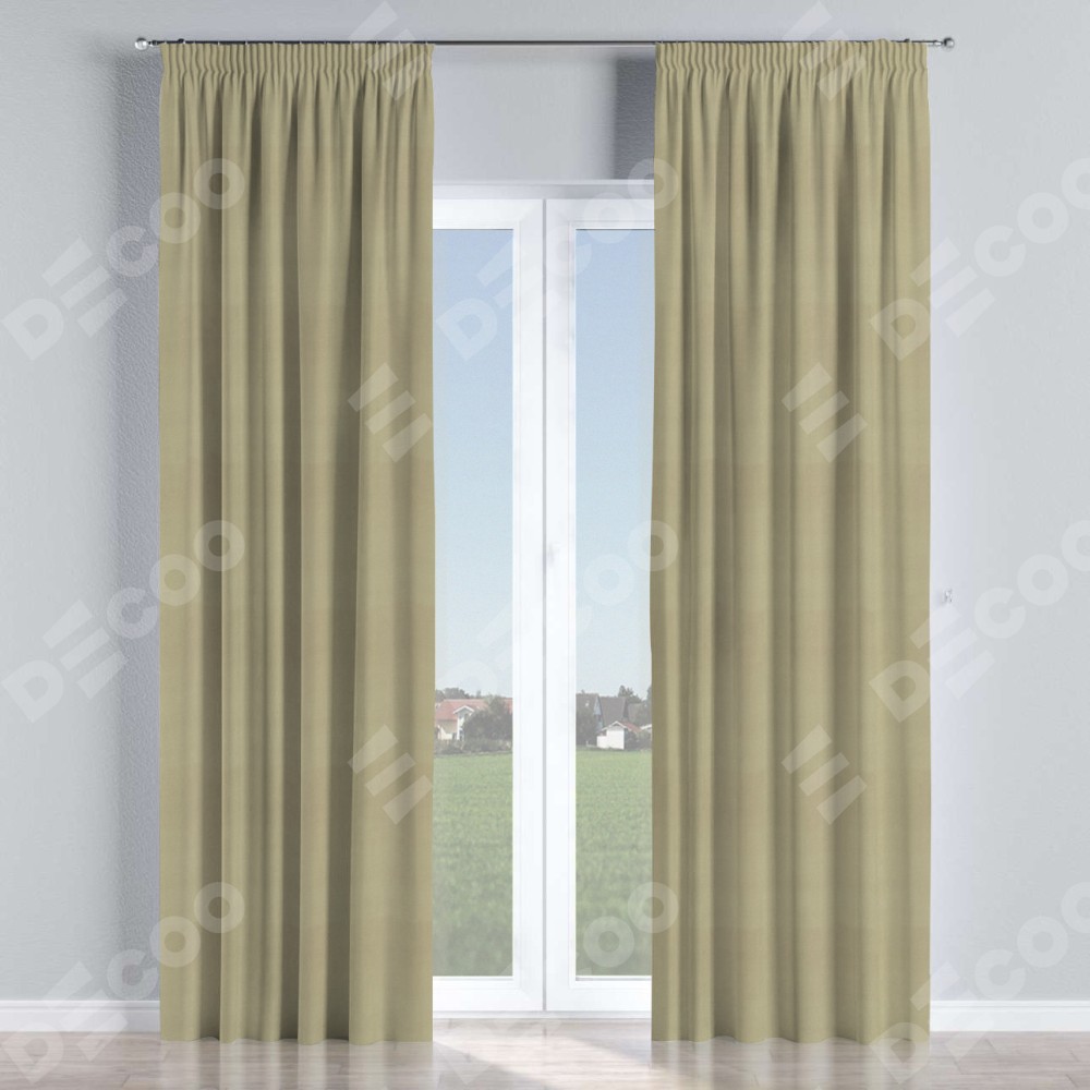 Комплект прямых штор, от производителя «Cortin», пошиты из ткани pipa блэкаут светло-бежевый, артикул ткани 02. С изнаночной стороны в верхней части штор пристрачивается шторная лента с декоративными складками «Карандаш». Для создания элегантных складок прямые шторы шьются по стандарту с коэффициентом 1:2 (на 100 см. ширины проёма 200 см. ширины ткани).