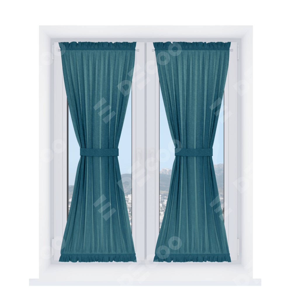 Штора «Песочные часы» производителя «Cortin», используется для створок окон и дверей, пошита из ткани рогожка димаут синий, артикул ткани 80422.