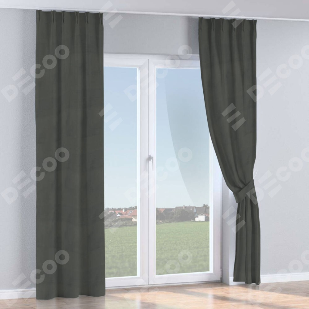 Комплект прямых штор, от производителя «Cortin», пошиты из ткани бархат серый, артикул ткани 5024. С изнаночной стороны в верхней части штор пристрачивается шторная лента с декоративными складками «Кустик». Для создания элегантных складок прямые шторы шьются по стандарту с коэффициентом 1:2 (на 100 см. ширины проёма 200 см. ширины ткани).