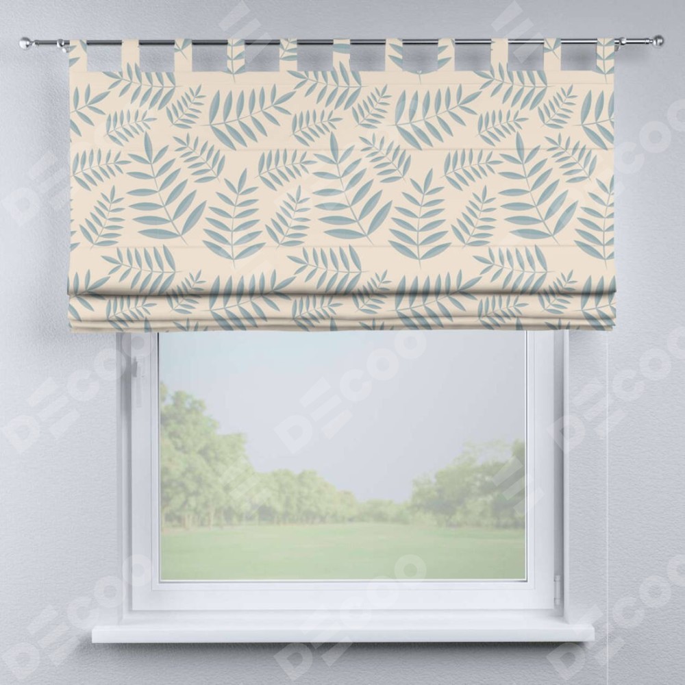 Римская штора производителя «Cortin», используется для проёма, пошита из ткани блэкаут с нанесением сублимационной печати «Веточка с листочками». Данная модель пошита на петлях, комплектуется на выбор круглым карнизом и подходит для монтажа на стену. Римская штора на петлях имеет простую систему регулировки высоты, отличительным преимуществом данной модели является простой способ монтажа. Достаточно повесить ее на трубу и штора готова!
