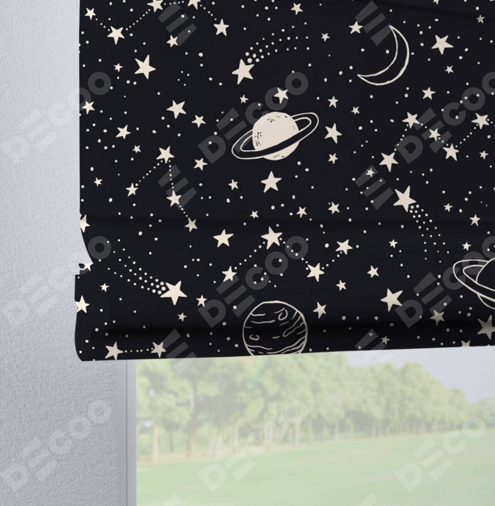 Римская штора производителя «Cortin», используется для проёма, пошита из ткани блэкаут с нанесением сублимационной печати «Глубокий космос». Данная модель пошита на петлях, комплектуется на выбор круглым карнизом и подходит для монтажа на стену. Римская штора на петлях имеет простую систему регулировки высоты, отличительным преимуществом данной модели является простой способ монтажа. Достаточно повесить ее на трубу и штора готова!