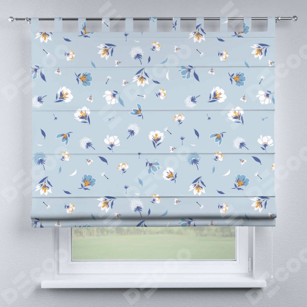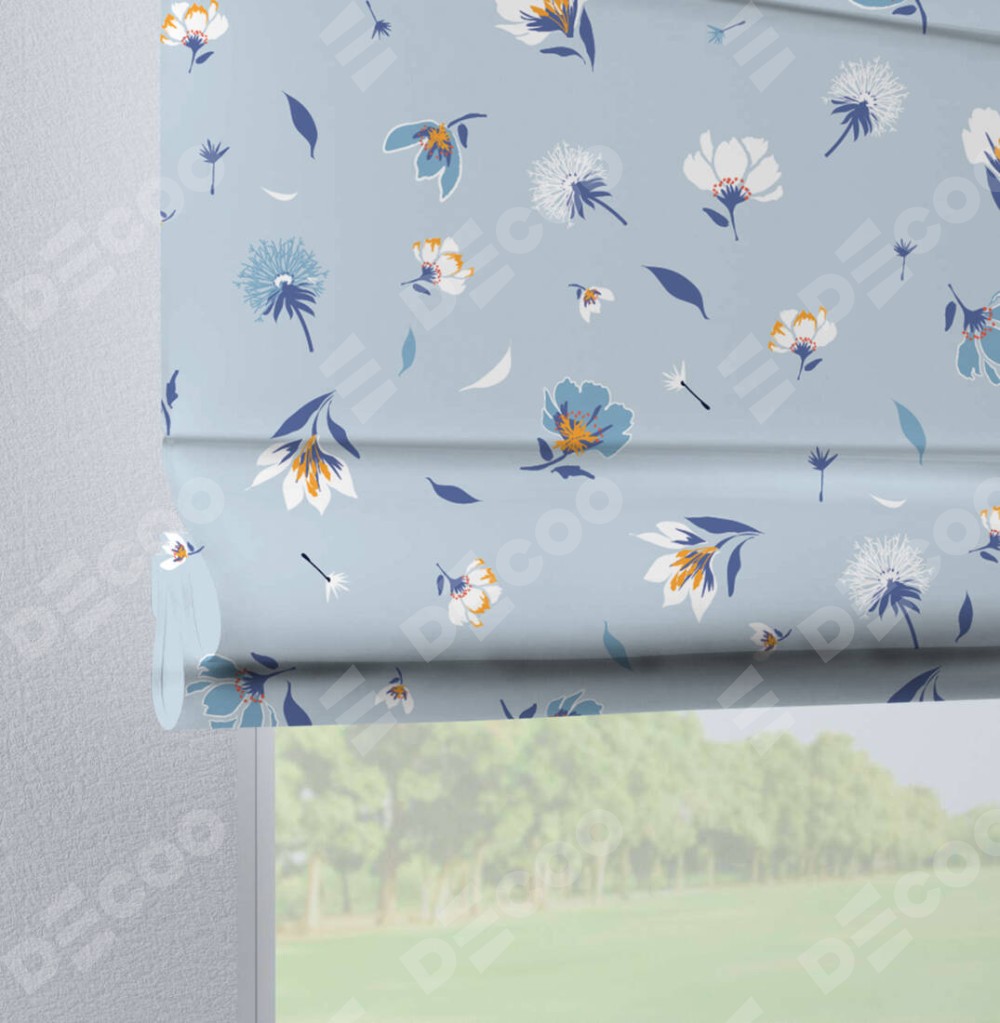 Римская штора на петлях «Голубые цветы» предоставлена в следующих характеристиках: