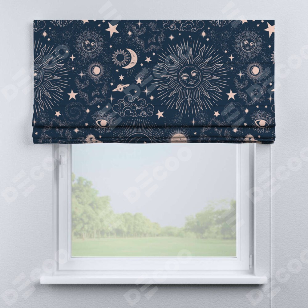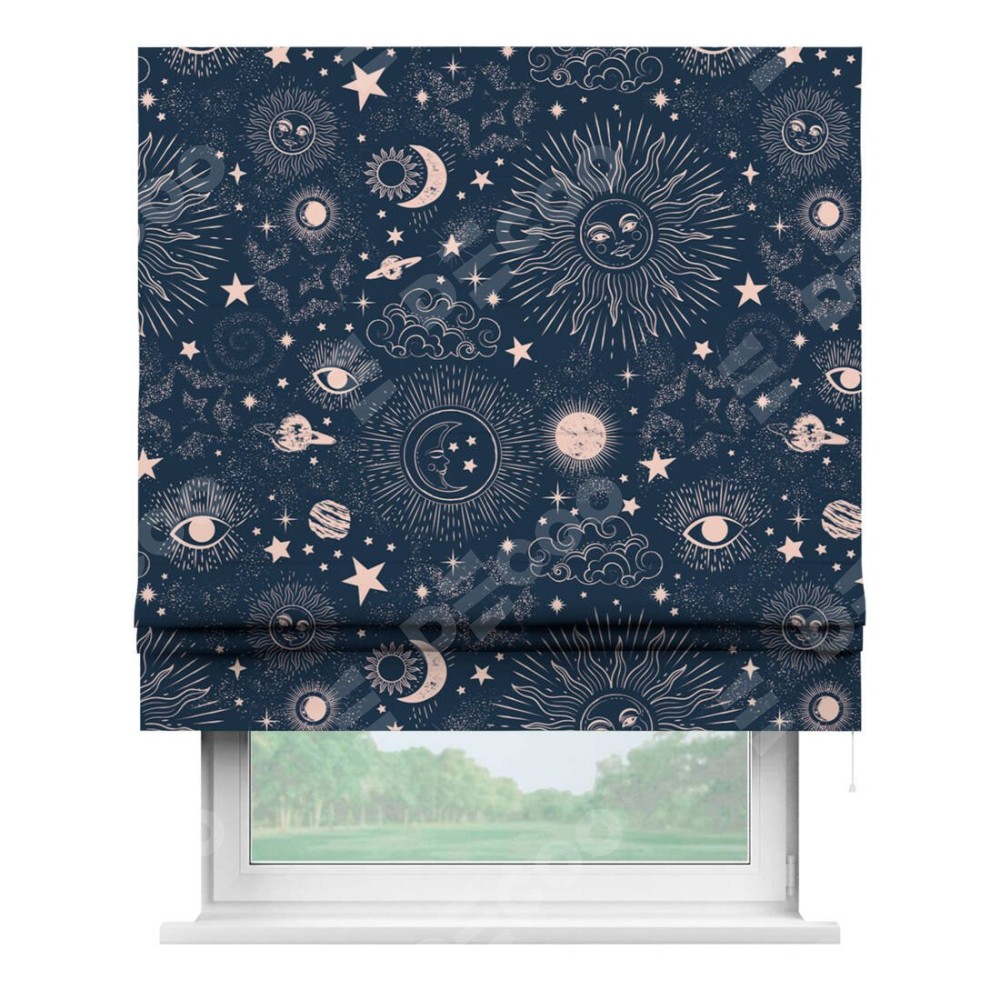 Римская штора «Кортин» для проема «Звёзды и планеты» предоставлена в следующих характеристиках: