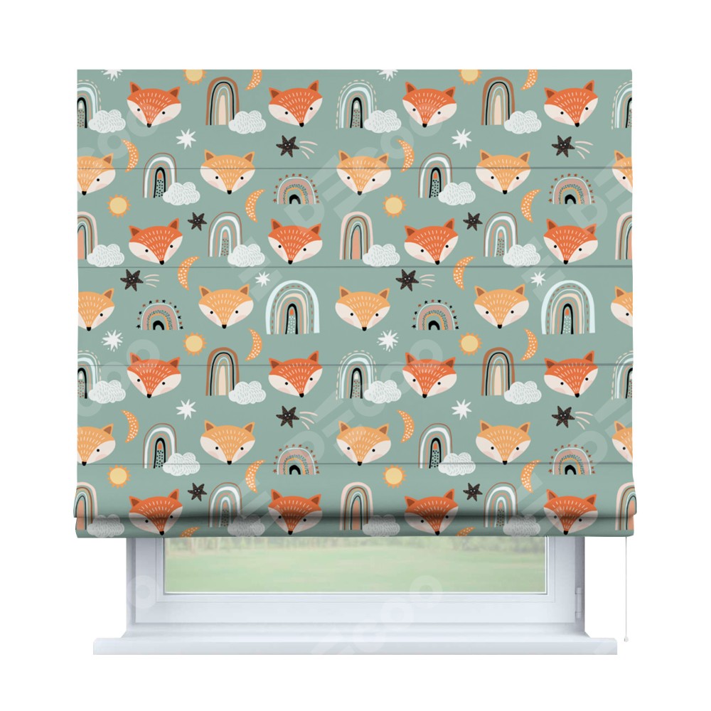 Римская штора производителя «Cortin», используется для проёма, пошита из ткани блэкаут с нанесением сублимационной печати «Озорные лисички». Имеет универсальный механизм и подходит для монтажа: на потолок, на стену и в нишу.