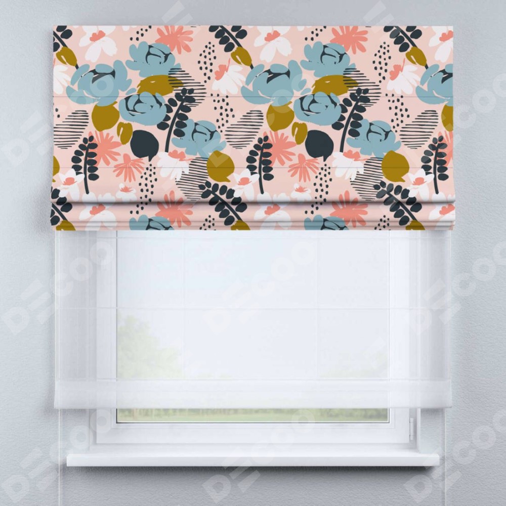 Римская штора день-ночь производителя «Cortin», используется для проёма, пошита из двух полотен, с лицевой блэкаут с нанесением сублимационной печати «Дивные цветы», вторая ткань тюль (по стандарту комплектуется тюль белого цвета артикул V-01). Имеет универсальный механизм и подходит для монтажа: на потолок, на стену и в нишу.