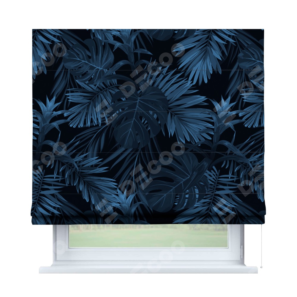 Римская штора производителя «Cortin», используется для проёма, пошита из ткани блэкаут с нанесением сублимационной печати «Ночные джунгли». Имеет универсальный механизм и подходит для монтажа: на потолок, на стену и в нишу.
