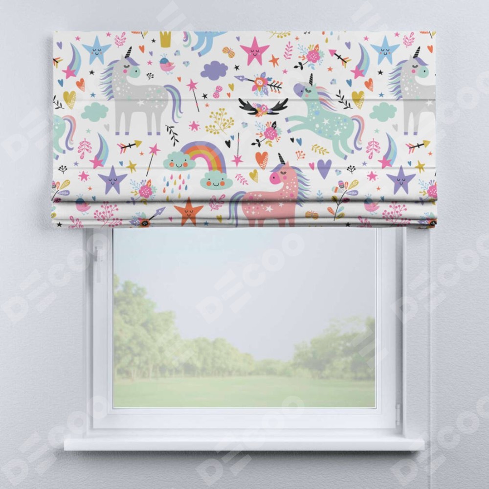Римская штора «Кортин» для проема «Радужные единороги»