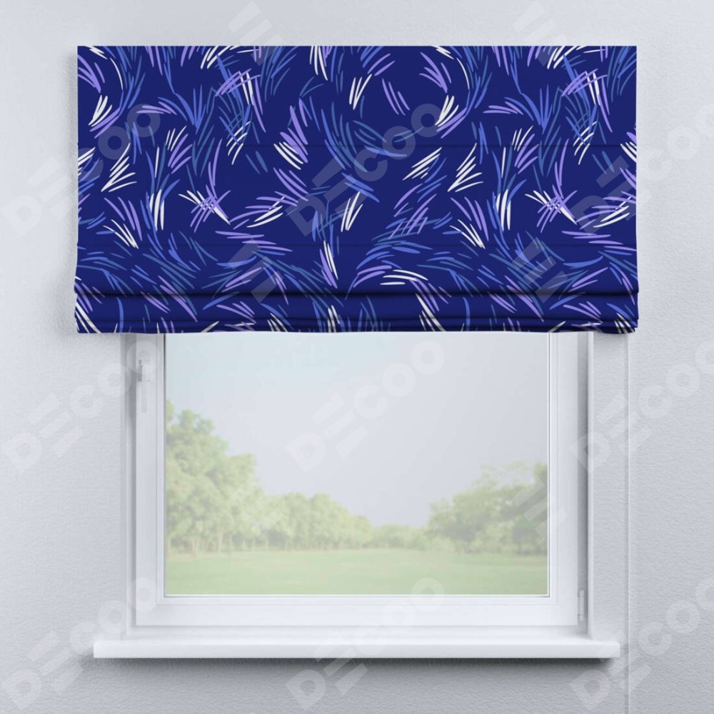 Римская штора производителя «Cortin», используется для проёма, пошита из ткани блэкаут с нанесением сублимационной печати «Синяя абстракция». Имеет универсальный механизм и подходит для монтажа: на потолок, на стену и в нишу.