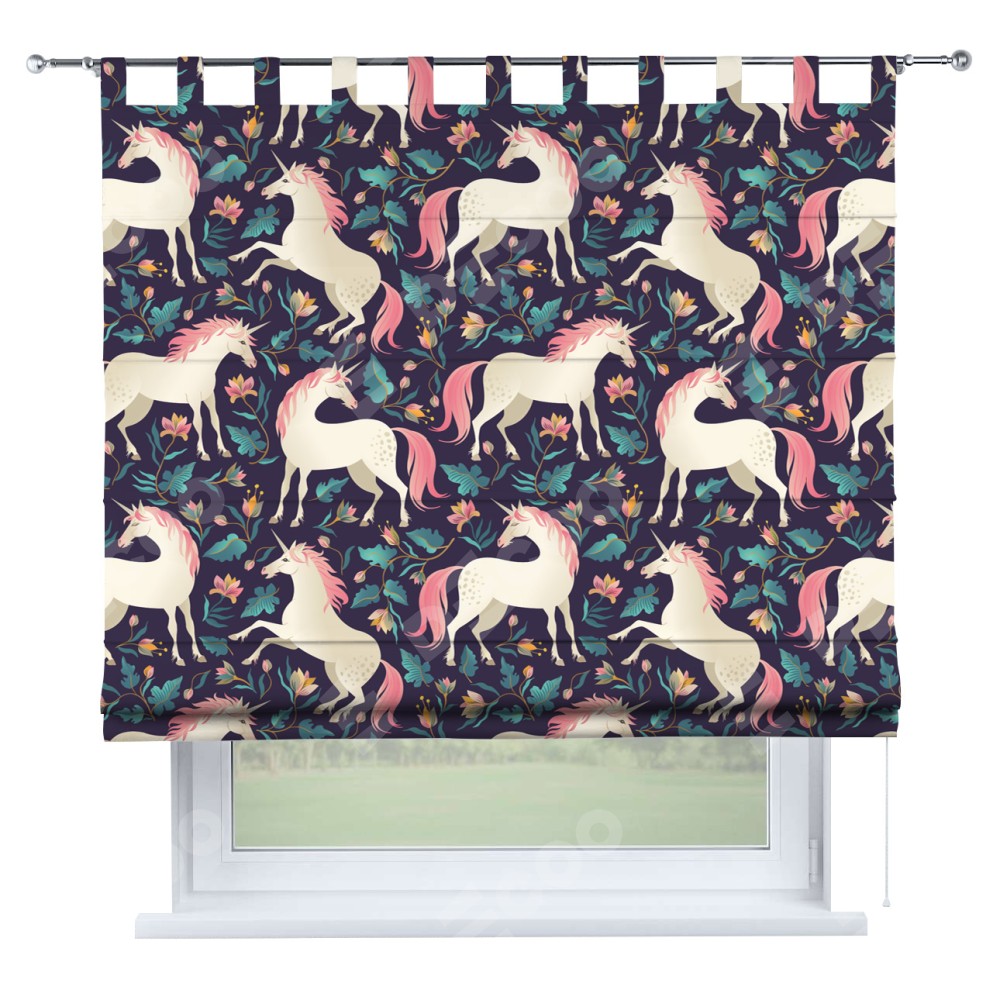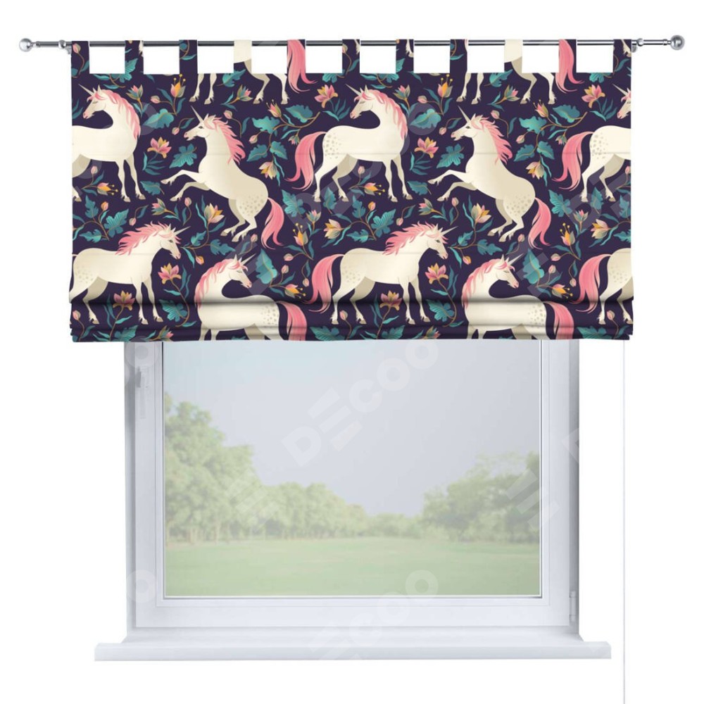 Римская штора на петлях «Сказочные единороги» предоставлена в следующих характеристиках: