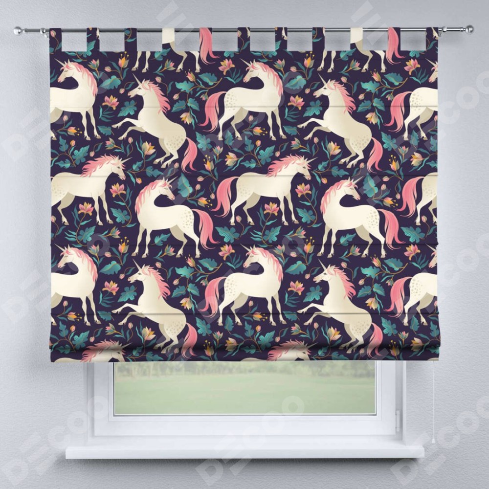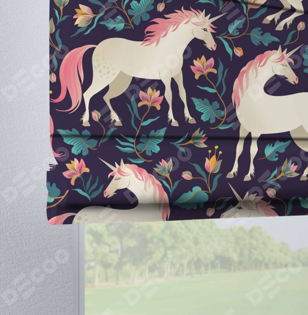 Римская штора на петлях «Сказочные единороги» отлично подойдёт для интерьера:.