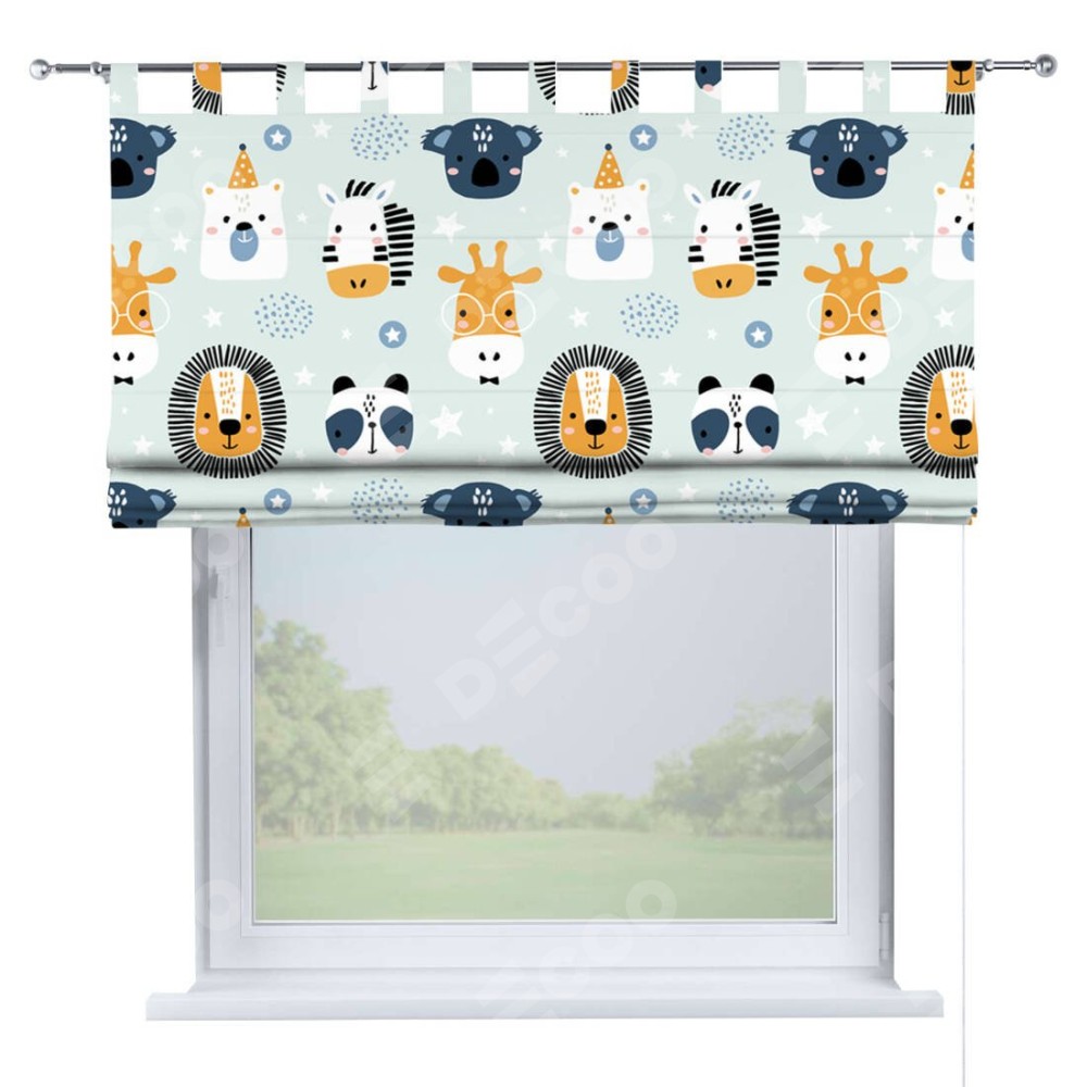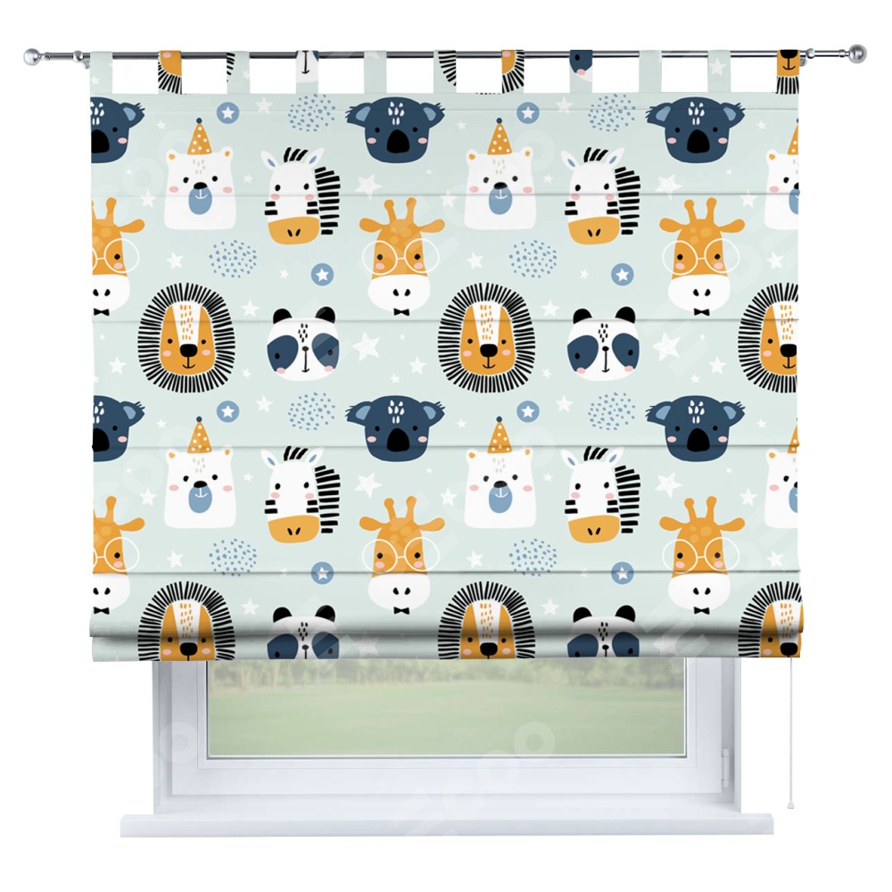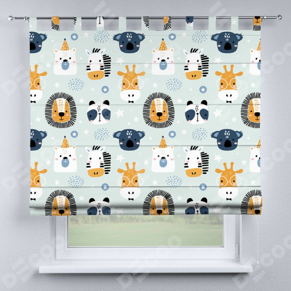 Римская штора производителя «Cortin», используется для проёма, пошита из ткани блэкаут с нанесением сублимационной печати «Чудесный зоопарк». Данная модель пошита на петлях, комплектуется на выбор круглым карнизом и подходит для монтажа на стену. Римская штора на петлях имеет простую систему регулировки высоты, отличительным преимуществом данной модели является простой способ монтажа. Достаточно повесить ее на трубу и штора готова!