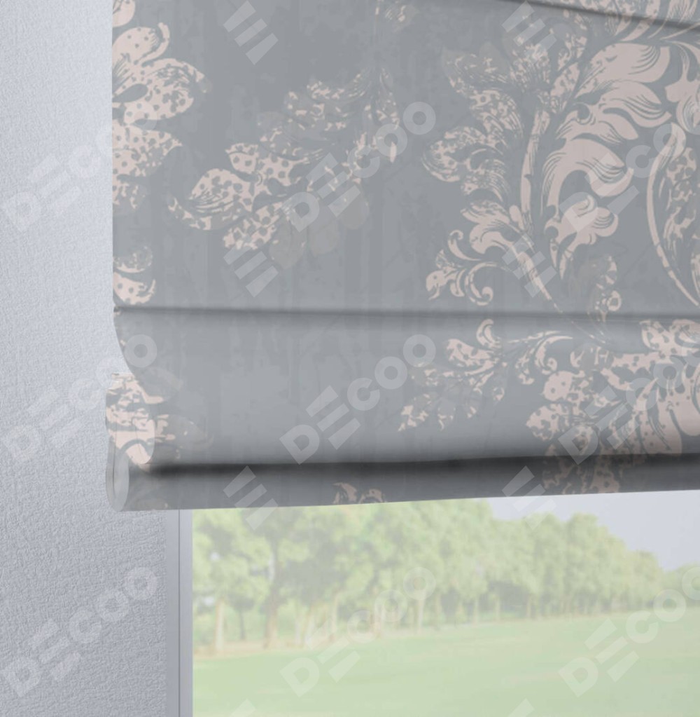 Римская штора на петлях «Винтажный узор серый» предоставлена в следующих характеристиках: