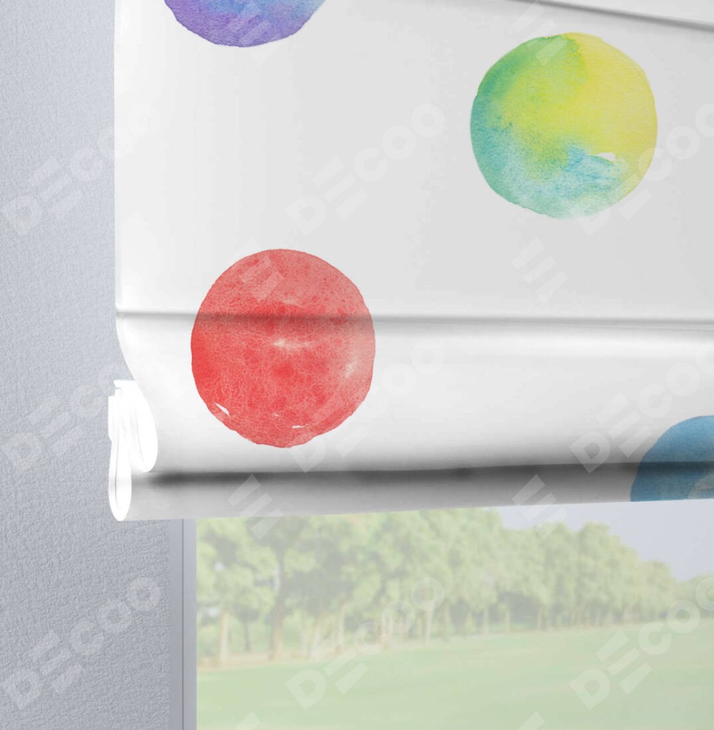 Римская штора на петлях «Цветные круги» отлично подойдёт для интерьера:.