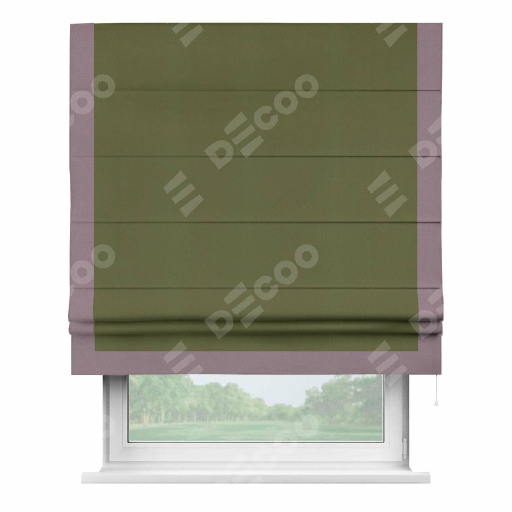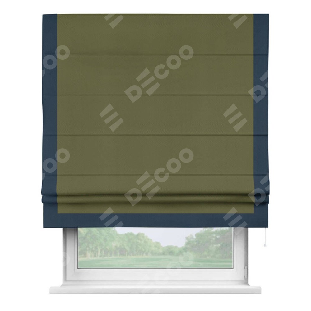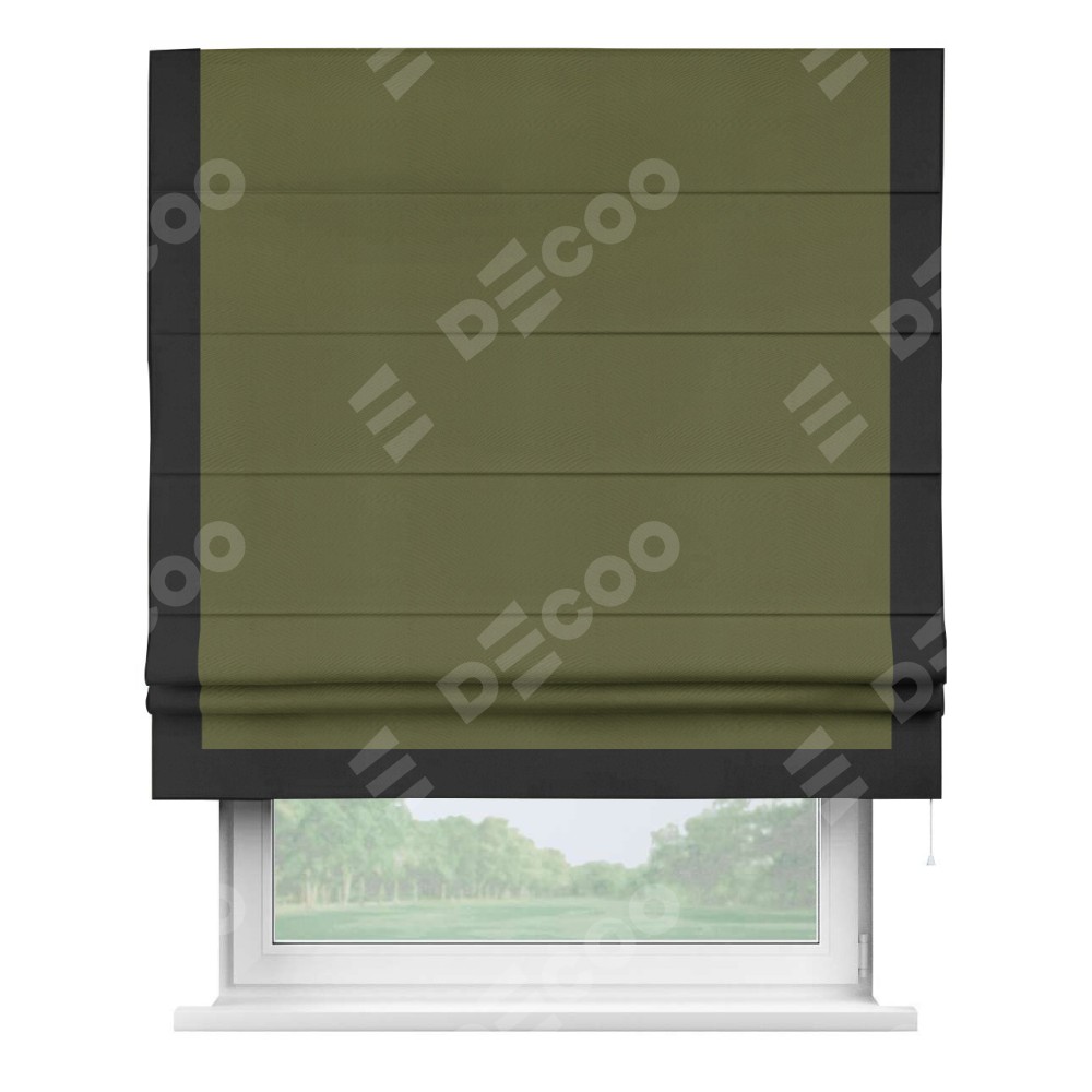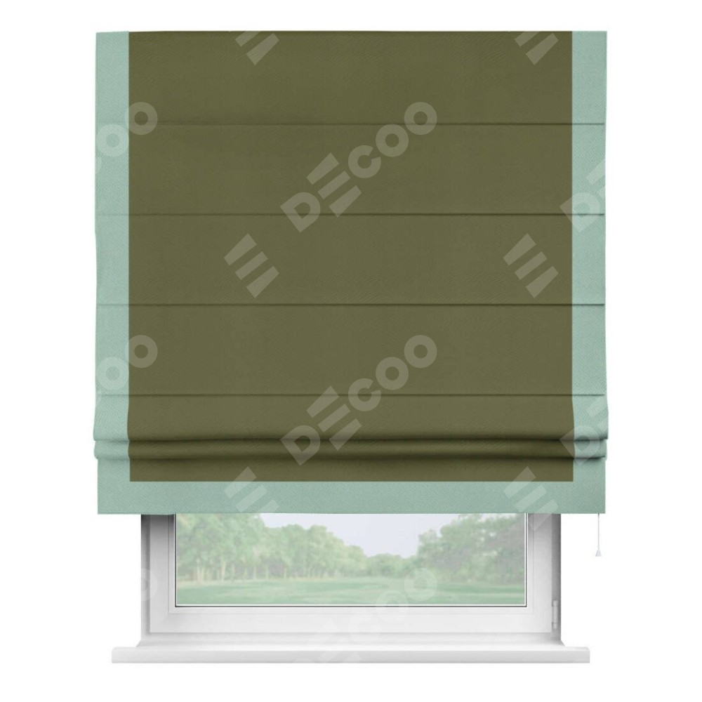 Римская штора «Кортин» с кантом Виктория, для проема, ткань блэкаут однотонный зелёный