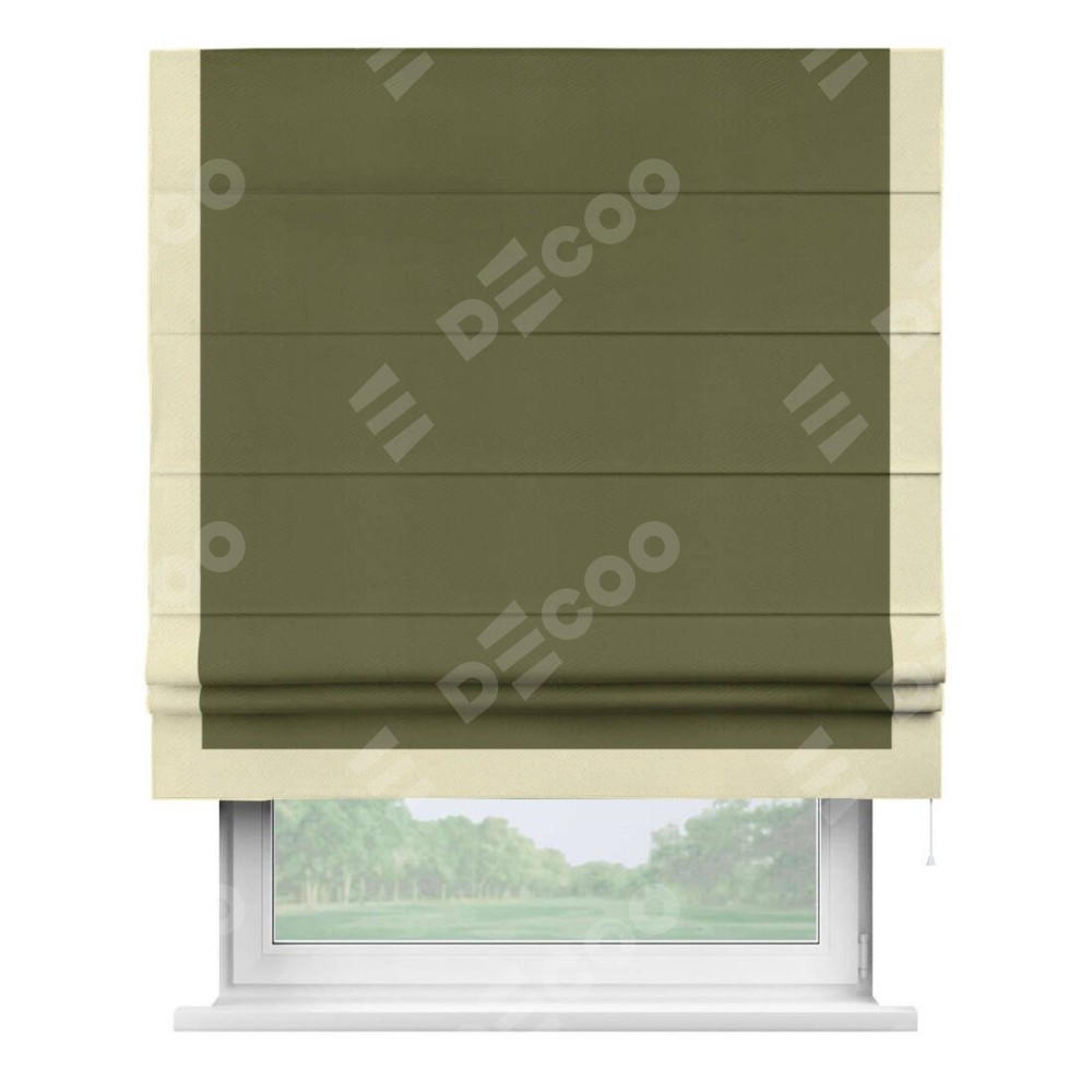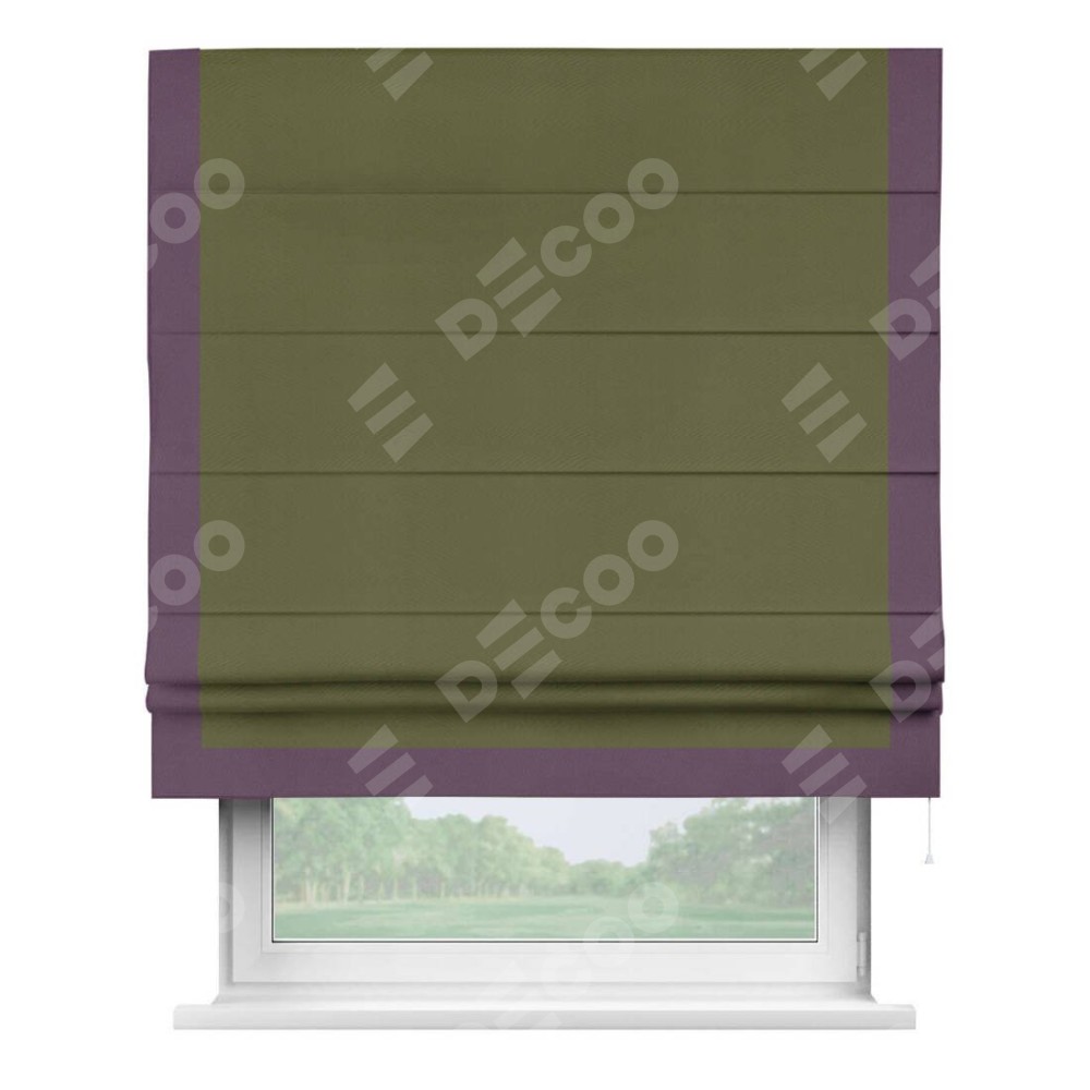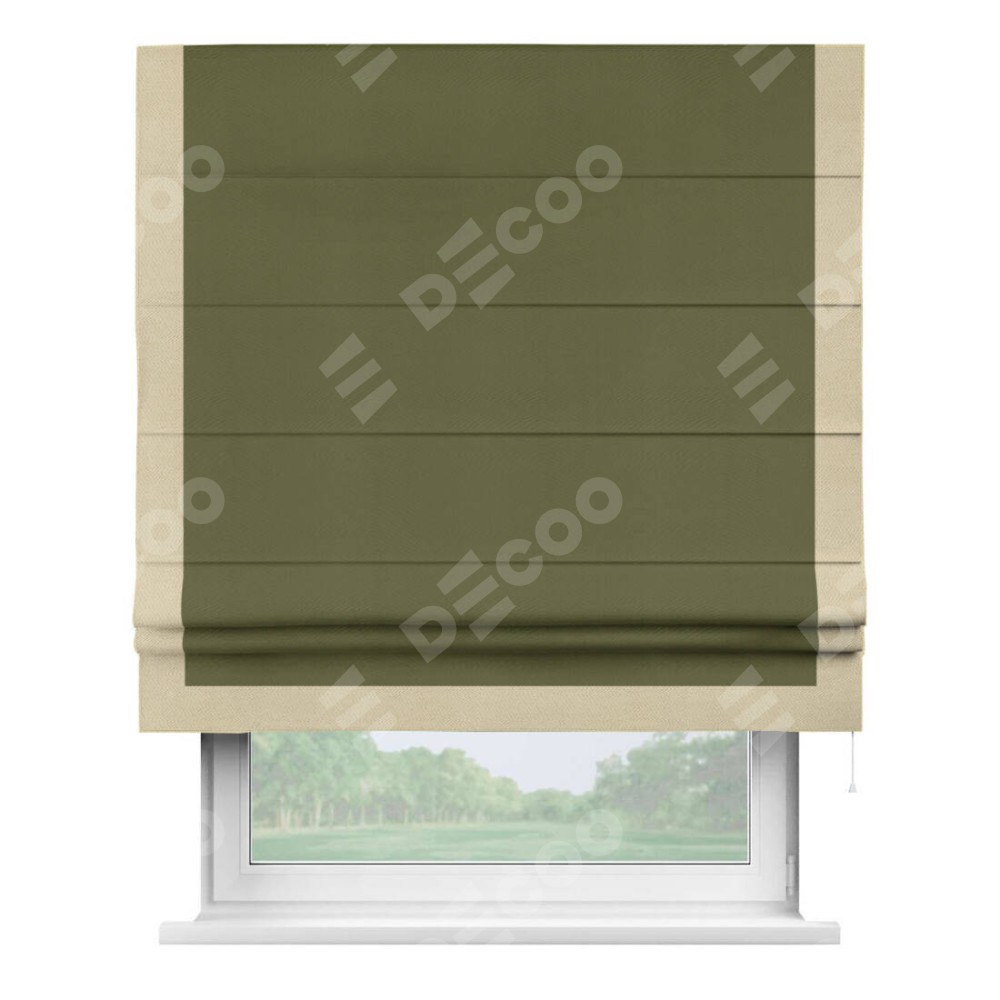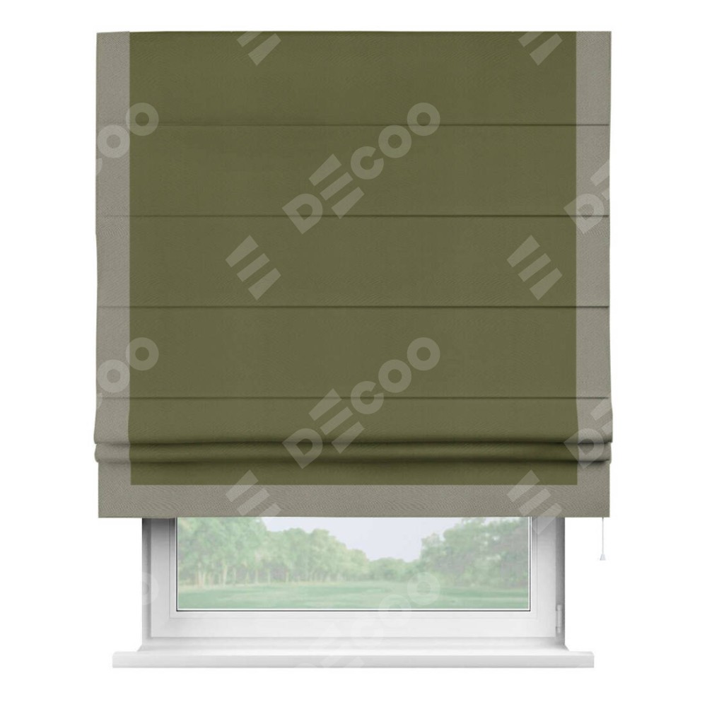 Римская штора «Кортин» с кантом Виктория, для проема, ткань блэкаут однотонный зелёный