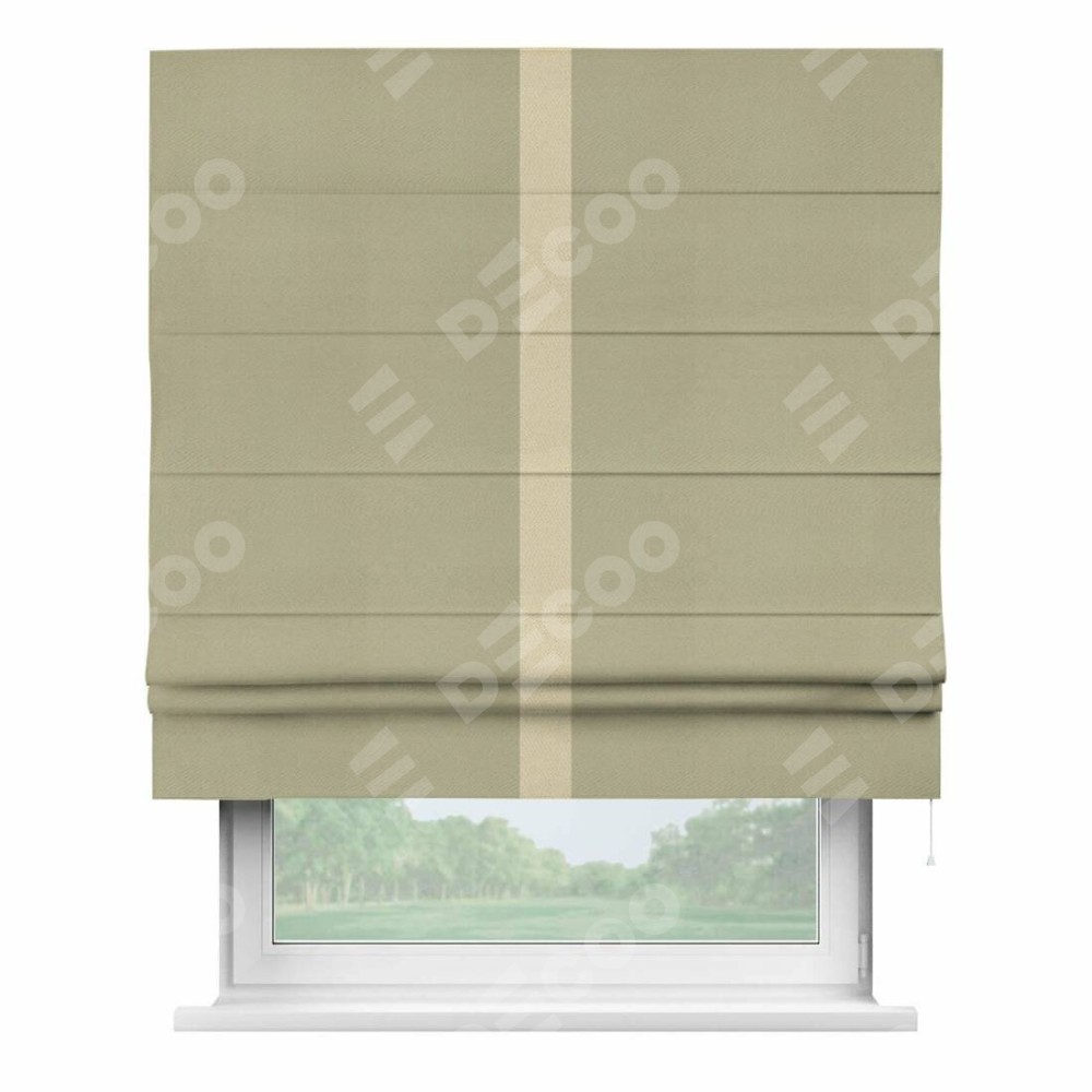 Римская штора производителя «Cortin», используется для проёма, пошита из ткани блэкаут однотонный милано капучино, артикул ткани 06. Отделка шторы кантом «Хайвей», ткань для канта используется из блэкаута однотонного разной расцветки на выбор. Имеет универсальный механизм и подходит для монтажа: на потолок, на стену и в нишу.
