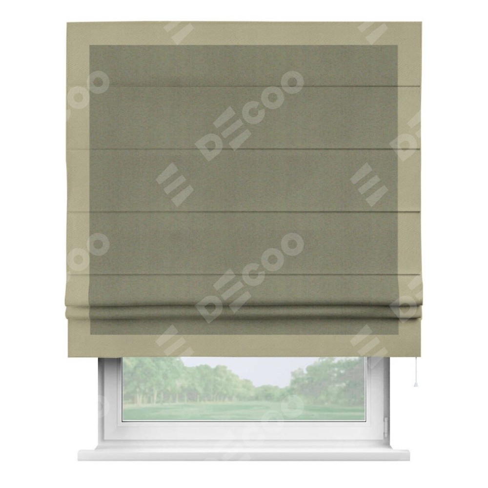 Римская штора «Кортин» с кантом Чесс, для проема, ткань блэкаут однотонный серо-коричневый